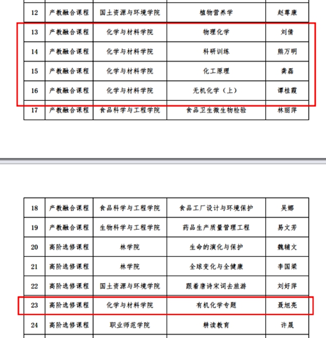 2024年1月4日,学校公布了2023年度33门校级课程立项结果,beat365立项5项。刘倩老师的“物理化学”课程、熊万明老师的“科研训练”课程、龚磊老师的“化工原理”课程、谭桂霞老师的“无机化学(上)课程”获批产教融合课程立项。聂旭亮老师的“有机化学专题”课程获批高阶选修课程立项。
