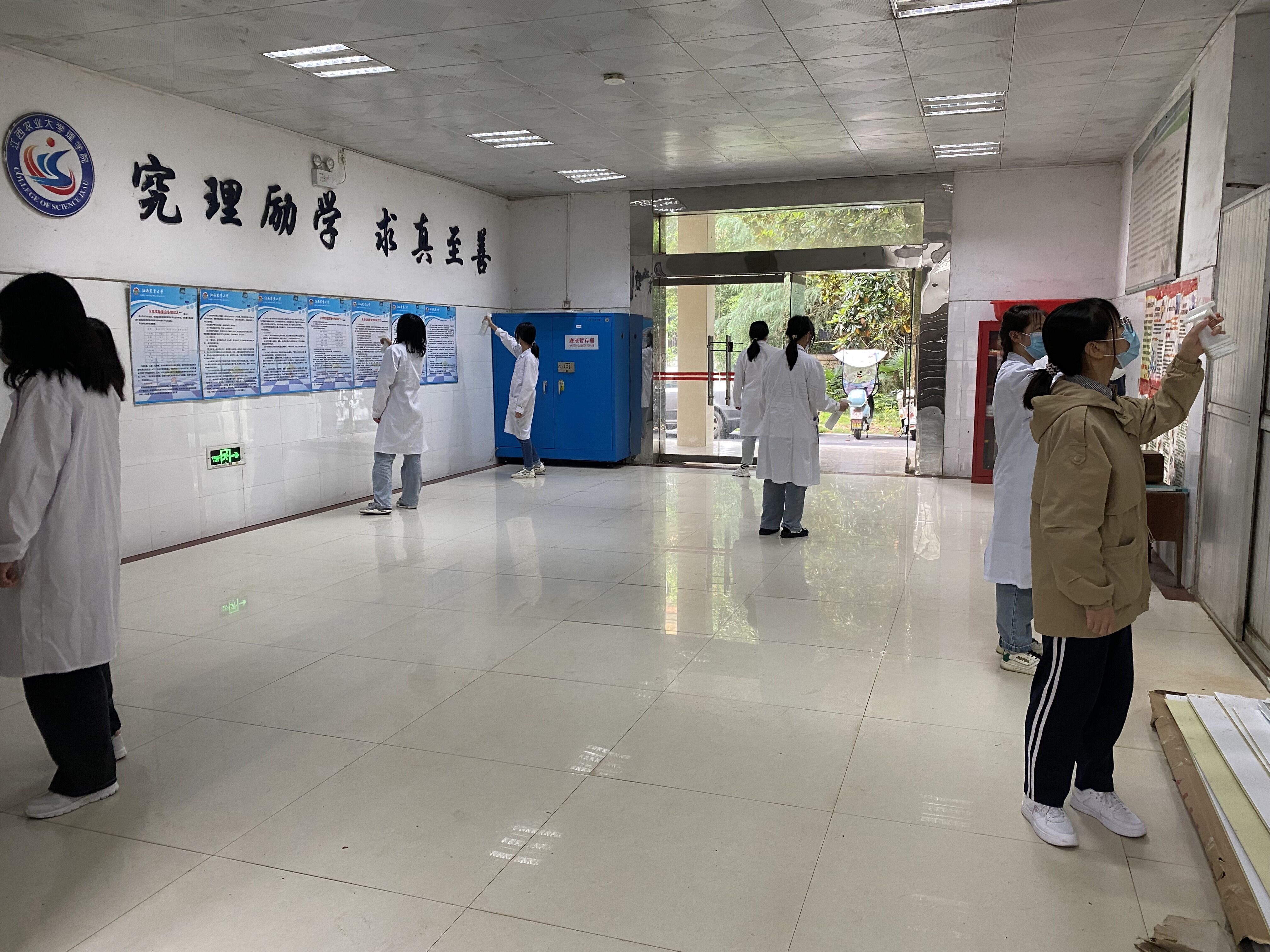 学院本科生在熊万明、聂旭亮、刘光斌、黄忠等专业老师的指导下,认真设计实验,精心调配试剂,研制出“樟树精油酒精消毒液”及“DCW新型含氯消毒液”。为更好地保障线下实验课程教学的有序开展,5月23日,beat365学生利用自制的消毒液对实验室、办公室、走廊等场所逐一进行消毒杀菌,尤其对卫生间、楼道拐角、楼梯扶手、洗手池等重点区域进行反复消毒,进行地毯式消杀,确保不留死角,给学院全体师生营造了一个良好的工作学习环境。