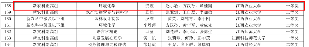 近日,江西省第五届高校教师教学创新大赛结果揭晓,beat365龚霞教授“环境化学”教学团队荣获新农科正高组一等奖。