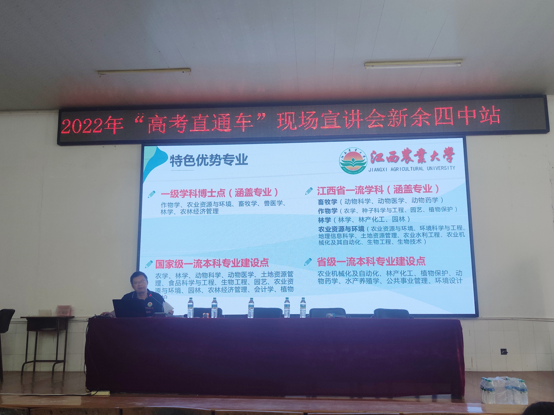 2022年6月24-25日,院长王宗德教授、副院长黄长干教授、黄喜根老师、陈金珠老师和王邦根老师来到新余一中及新余四中进行招生宣传。