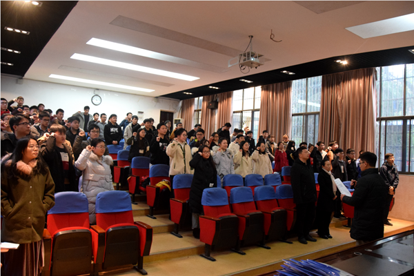 考研学子代表陈玥瑶同学向全体与会人员分享了考研一路走来的酸甜苦辣,并代表全体学生感恩了学校及学院的培养。考研学生代表赵旭恒则带领全体考研学子进行了慷慨激昂的宣誓,“让我们用奋斗创造辉煌,铸就无悔人生。让我们用激情点燃梦想,赢得灿烂人生。”