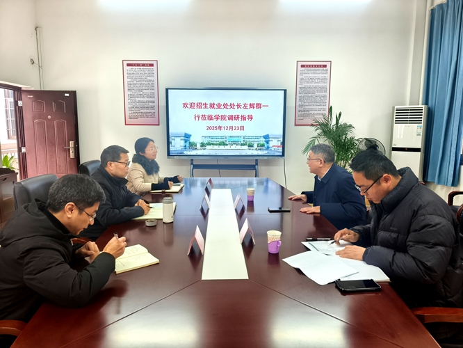 2025年12月23日11:10,学校招生就业处处长左辉群、招生办主任李飞到beat365开展招生工作调研,学院党委书记刘庆言、副院长龚霞、学生党总支书记彭玉萌参与调研座谈,座谈会由刘庆言主持。