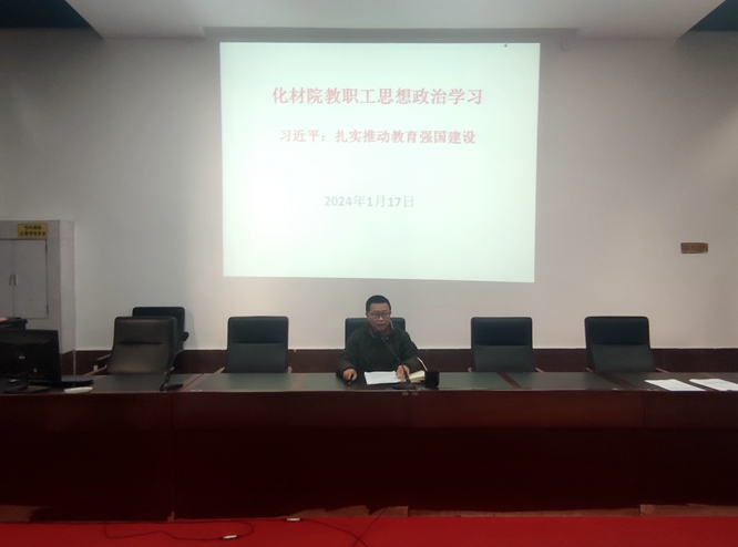 2023年1月16日14:30,学院在致学楼阶梯报告厅召开学院教职工大会,开展了教职工1月份思想政治学习。