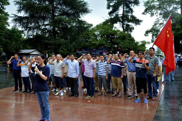 在遵义红军山烈士陵园的红军烈士纪念碑前,全体党员深切缅怀了在长征中英勇作战最终付出了生命的烈士们,面对着鲜艳如火的党旗,重温入党誓词。在红军坟、邓萍烈士墓及红军英烈墙前,大家听了遵义党校老师述说的革命事迹后,无一不动容,被革命先烈大无畏的气概深深震撼。