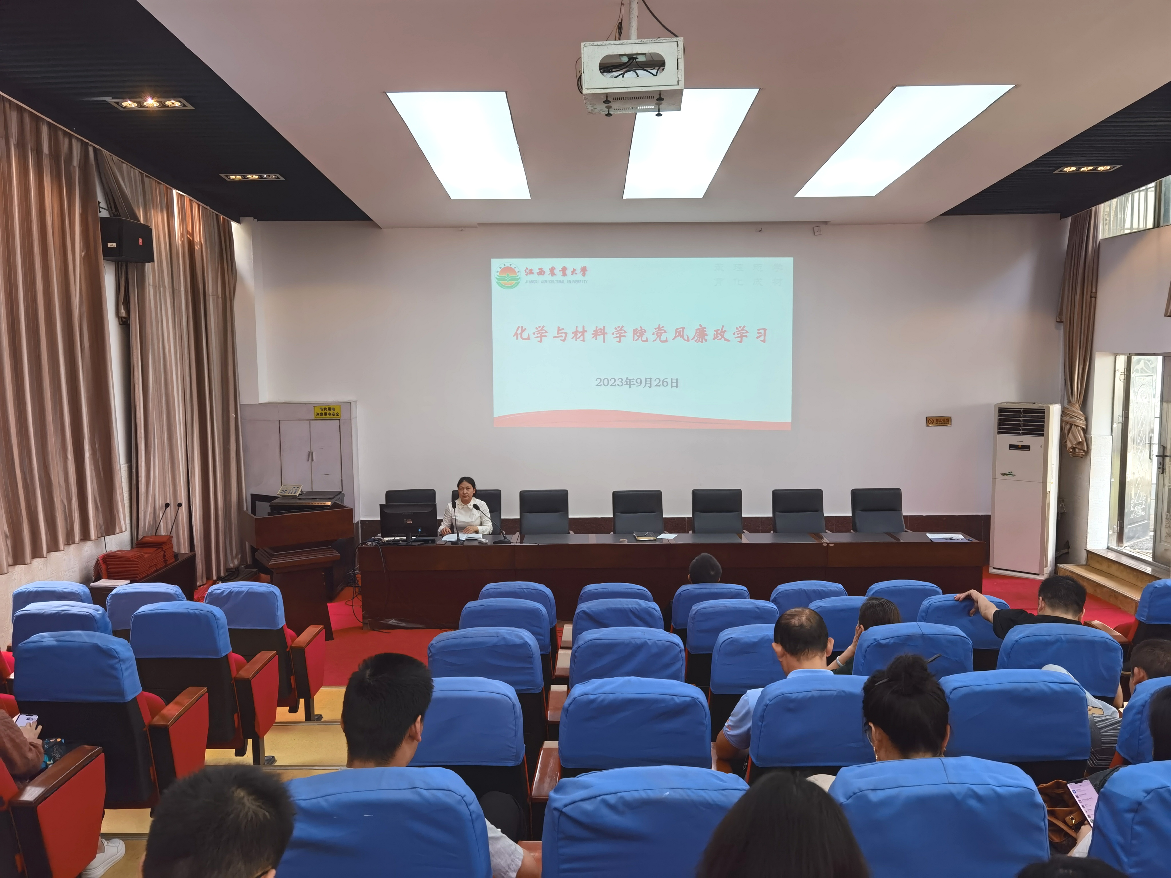 2023年9月26日14:20,学院召开教职工大会开展教职工党风廉政警示教育学习。学院全体教职工参会,会议由党委书记刘庆言主持。