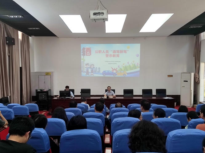 为深化党纪学习教育开展,2024年5月28日14:30,学院召开教职工大会开展公职人员“酒驾醉驾”警示教育。学院全体教职工参会,会议由党委书记刘庆言主持。