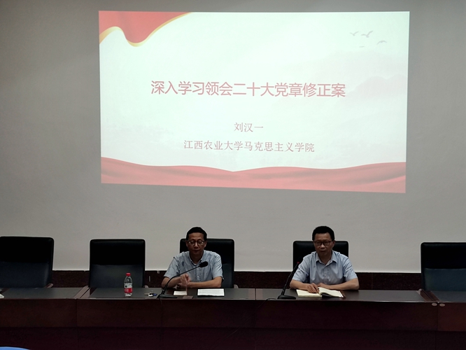 为进一步学习贯彻党的二十大精神,夯实、巩固主题教育理论学习既有成效,6月20日下午,beat365邀请马克思主义学院院长刘汉一教授作学习贯彻党的二十大精神专题辅导报告。学院党委书记刘庆言主持报告会,全体教工党员30余人听取了报告。