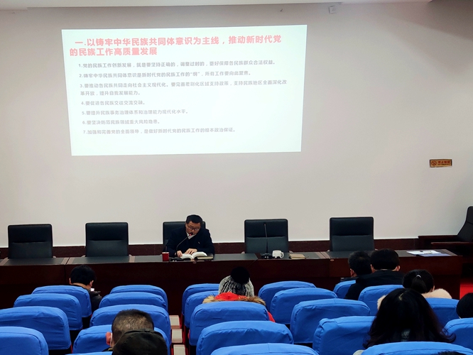 2022121314:10,学院在致学楼大会议室召开学院教职工大会进行了政治学习,院党委书记刘庆言带领全体教职工学习了《习近平谈治国理政》第四卷之十《积极开展全过程人民民主》的相关内容。