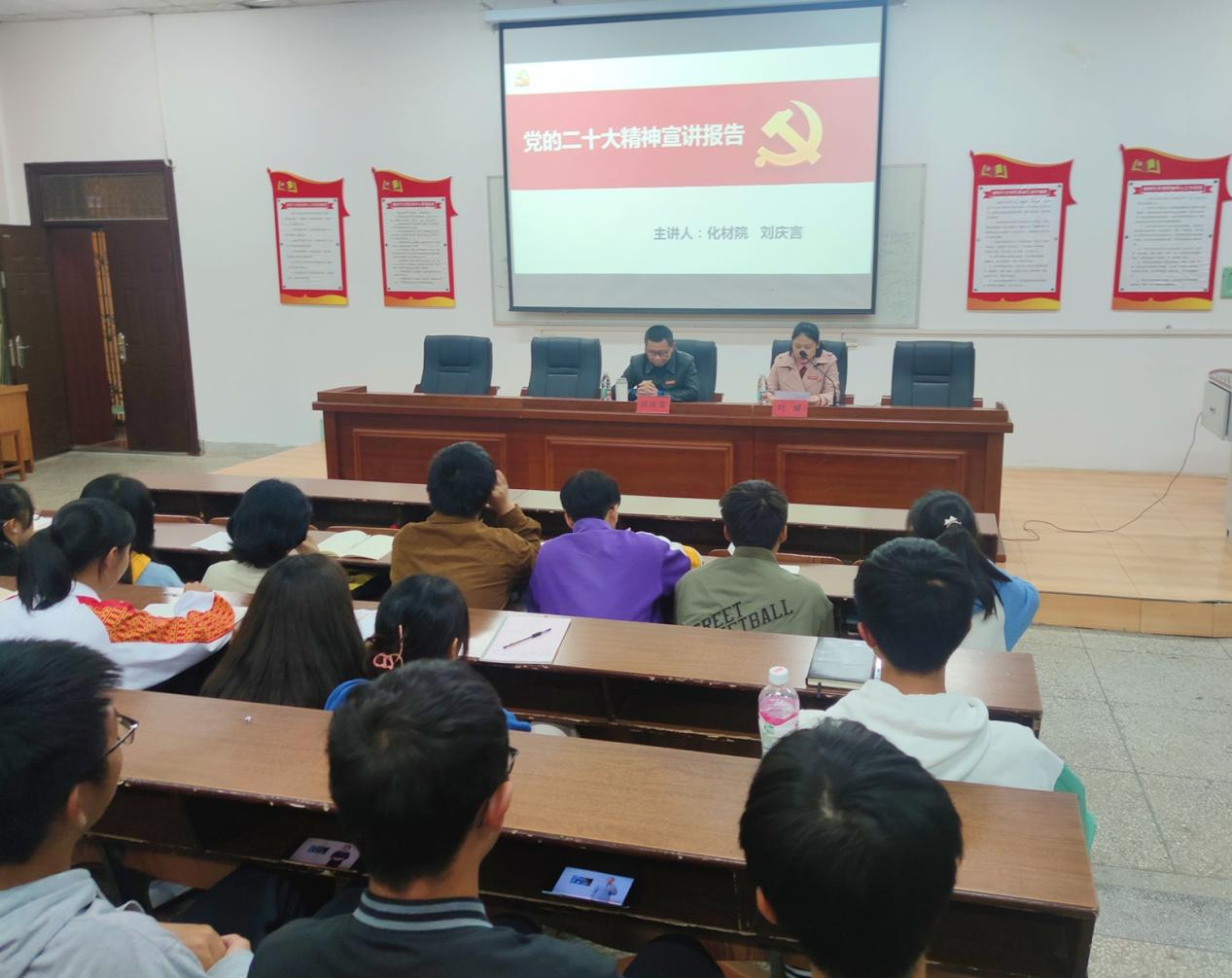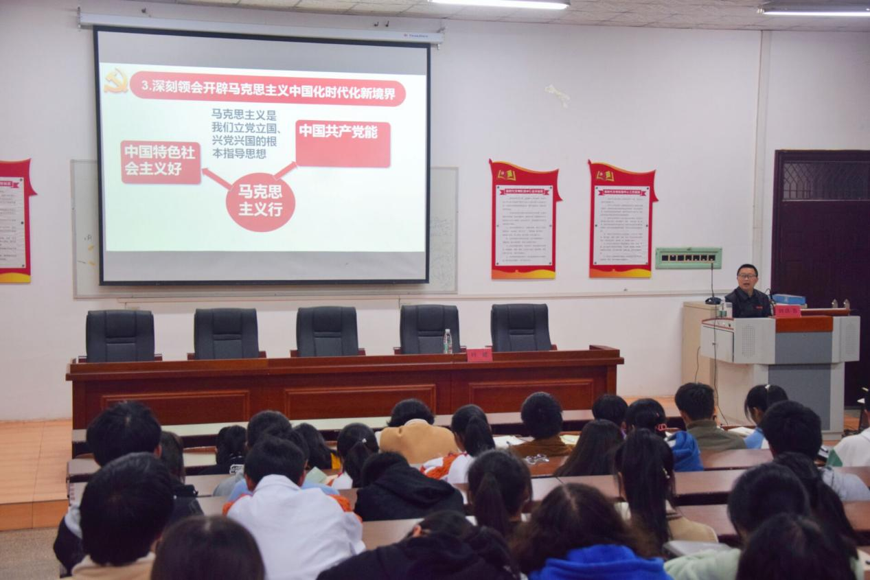 为深入学习宣传贯彻党的二十大精神,更好地推动党的二十大精神进校园、进班级、进课堂,同时扎实开展好新生入学教育、为新生上好专题党课,2022年11月4日晚上7点,beat365于一教惟义楼党校教室举办党的二十大精神宣讲报告会,报告会由学院党委书记刘庆言主讲。学院党委副书记叶健、辅导员及182名新生参加报告会。