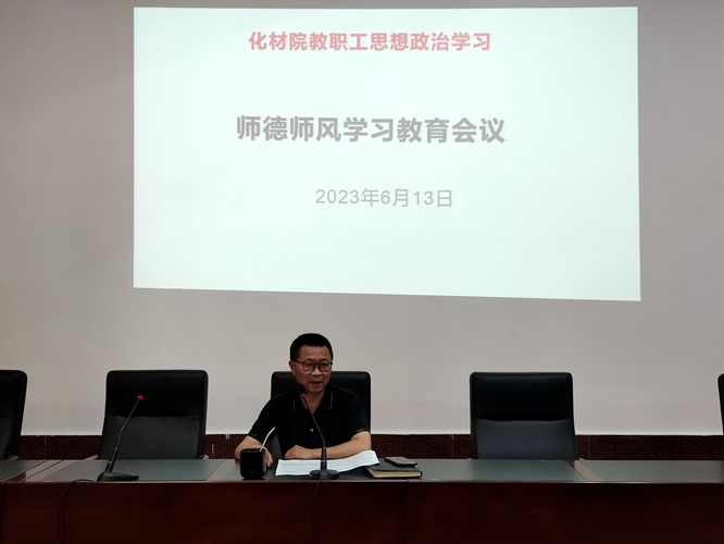 2023年6月13日15:00,学院在致学楼阶梯报告厅召开学院教职工大会,开展了6月份教职工思想政治学习,专题进行师德师风教育学习。院党委书记刘庆言传达了省教育厅关于师德师风建设的会议精神,学习警示了教育部公开曝光第十二批7起违反教师职业行为十项准则典型案例。