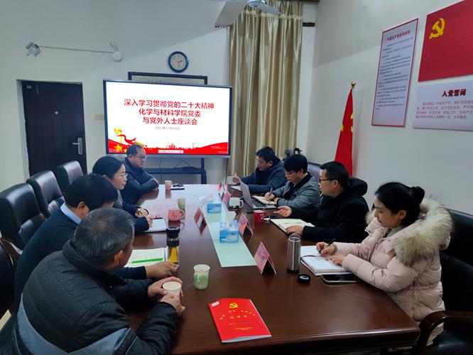 会上,龚霞、黄建平、彭大勇几位民主党派人士及高知联成员温世和围绕“如何在化材院积极落实党的二十大精神?”及“如何贯彻落实党的二十大精神,促进化材院高质量发展?”两个问题,分别从学科建设、教材编写、学生教育、校友工作及资产管理等多个方面提出了意见及建议。随后,卢丽敏、叶健分别就党外人士的意见及建议谈了自己的体会;院长王宗德结合学院实际肯定了党外人士的意见和建议,对他们提出的问题一一作了答复,并介绍了学院“十四五”的规划和发展。