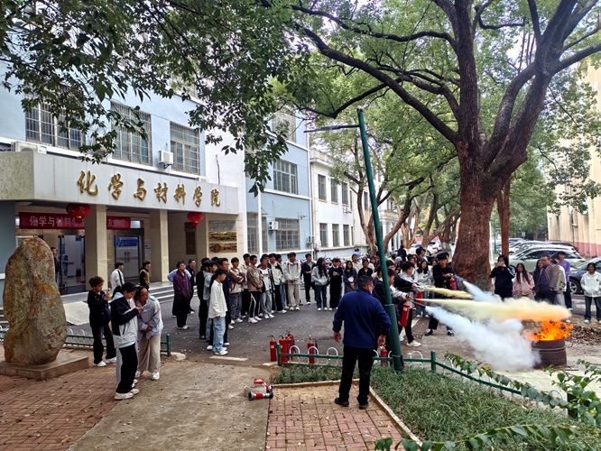 2025年11月4日下午,学院邀请保卫处干警徐杰等为学院师生开展消防安全知识培训,并开展消防器材使用等消防演练活动,学院2025级大一新生、部分教师和研究生参与了演练活动。