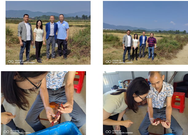 2023年10月14日,应永新县科技局的邀请,针对永新县永新县栖凤塔农业科技有限公司的菌菇种植土壤肥力下降、重茬产量低和病虫害问题情况以及永新县禾浩农业发展有限公司养虾水体污染问题,江西农业大学化材院研究生支部黄喜根教授、黄建平和贺雪梅等博士到实地调研并取土样,提出明确建议和方法,科技局和基地负责人万仁军和周龙对专家的服务非常满意。