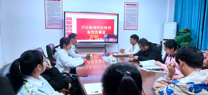 会议开始前,先学习了习近平总书记考察江西重要讲话精神。接着召开了发展对象转预备党员会议,讨论接受陈涛同志为预备党员事宜。经过组织程序,同意接受陈涛同志为中共预备党员。