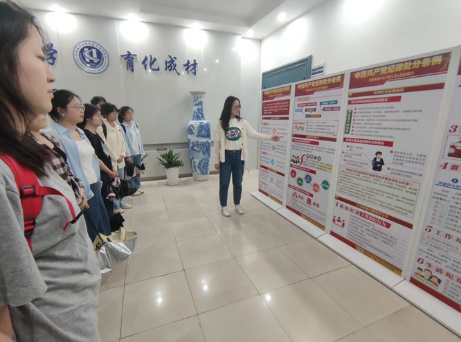 2024年5月21日下午,本科生第一党支部全体党员集体参观学习了学院设立的党纪学习教育宣传栏,支部书记邓雪云就宣传栏上的一些重点内容向党员进行了强调。