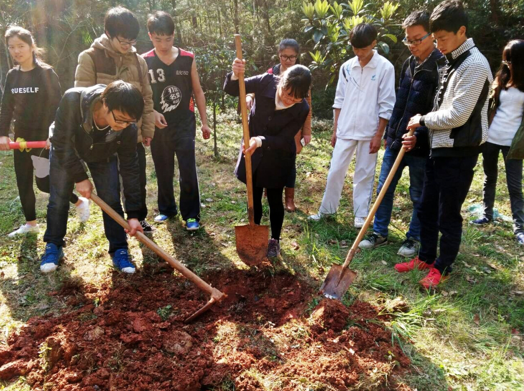 下午四点,植树活动在理学院办公楼后面的校友纪念林开始。同学生们轮番上阵,一起挖坑、放树、施肥、填土、浇水、挂树牌。最后,在树下每人埋下的一个心愿瓶,留下一份念想和期待。
