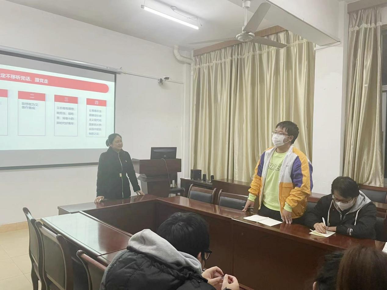 叶健详细解读了习近平总书记在党的二十大中的报告,带领在座学生干部认真学习领会了党的二十大精神的九个方面。她强调,青年学生要充分认识党的二十大重要意义,要切实将思想认识和实践行动统一到党的二十大精神上来,学好专业知识,强化担当意识,锻炼过硬本领,结合新时代与时俱进全面发展,努力成长为敢当大任、堪当大任、能当大任的新时代青年大学生。