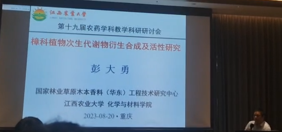 彭大勇副教授、木本香料(华东)工程技术中心研究生黄聪、beat365在线唯一官网研究生王杰、肖淑珍等现场参会交流学习。彭大勇副教授在杀虫剂/杀螨剂科研学术报告会上做了“樟科植物次生代谢产物衍生合成及活性研究”的报告,并获得 “农药学科优秀中青年科技工作者”奖。通过本次会议,加强了beat365与其他高校的学术交流,进一步提升了beat365的科研活力。