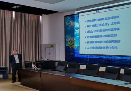 报告会上,郭庆祥教授从“生物质转化的意义及其策略”、“从纤维素出发合成γ-戊内酯”、“通过γ-戊内酯合成尼龙单体”、“纤维素催化转化制备乙醇”、“纤维素催化转化制备丙酮醇”、“从生物质制备含氮化合物”等六大板块进行了其研究内容及成果的介绍,突出讲解了生物质化学转化的几大例子及其应用。郭老先生儒雅的学术气质、严谨的科研态度以及其逻辑清晰的讲解深深的吸引着在座的师生。