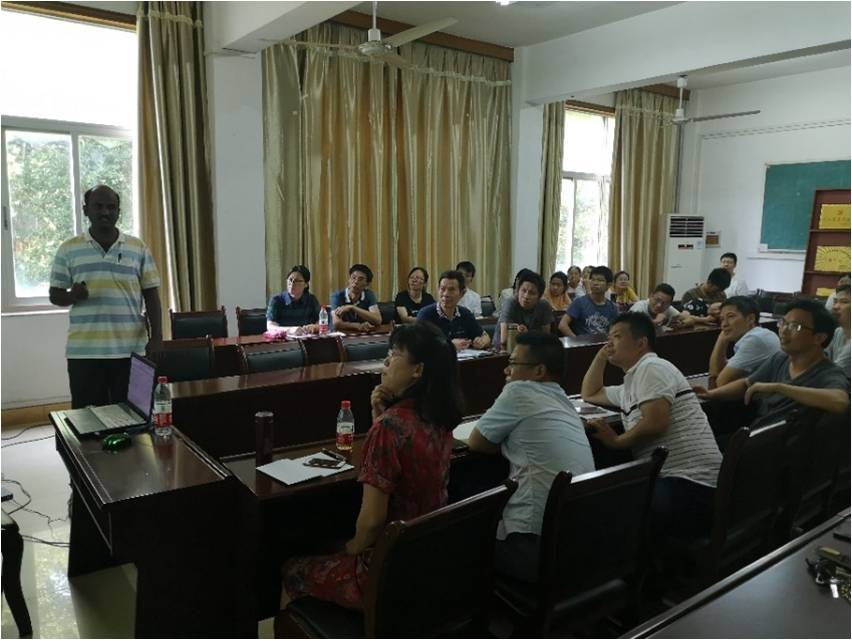 为响应国家“一带一路”倡议,加强师生与国际合作与交流,应我校邀请,印度阿拉噶帕大学生物电子学与生物传感器系Jayakumar博士(韩国国立釜山大学和中国南京大学博士后)于2019年9月10日下午在理学院研究生教室进行学术交流。报告会由江西农业大学科技处和理学院主办,理学院副院长黄长干教授主持。