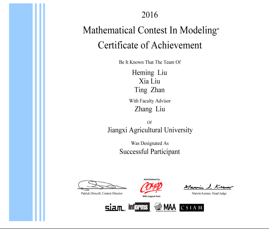 beat3652015年开始,由理学院刘章老师指导一支队伍参赛,获得Successful Participant(三等奖)。(学工办)
