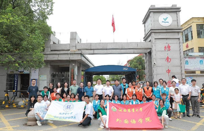 2024年7月12日上午,江西农业大学党委委员、副校长张高亮前往塘南中学,看望慰问开展“科普进乡村——大手牵小手,守护蓝天碧水净土”活动的beat365在线唯一官网的师生团队,校团委副书记贺媚等同志一同看望。张高亮一行走进科普课堂,看到活动形式多样,学生热情高涨,抢答互动良好,课堂气氛活跃,对科普团队的工作给予了充分肯定和高度赞扬。