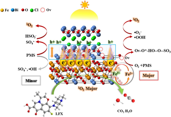 2025年6月3日,beat365硕士研究生罗传发以第一作者在二区TOP《Separation and Purification Technology》(IF= 8.1)发表题为“Synergetic oxygen vacancy and homologous heterojunction into BiOCl/Bi2Fe4O9 for levofloxacin photodegradation: insight of Ov-O*-PMS intermediate toward efficient 1O2 generation”的论文,江西农业大学为第一署名单位。卢丽敏教授、黄喜根教授和谢琰玉博士为共同通讯作者,该研究工作得到了国家自然科学基金、江西省自然科学基金和福州大学能源与环境光催化国家重点实验室开放项目的支持。