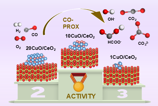 富氢中CO优先氧化(CO-PROX)被认为是解决燃料电池CO中毒的可行策略,但在低温下获得良好的活性仍然是一个挑战。本文采用模板法制备三维有序大孔(3DOM)CuO/CeO2催化剂,通过调控活性金属负载调整金属-载体相互作用(MSI)。10CuO/CeO2催化剂在110 °C下实现了100%的CO转化,并表现出优异的稳定性。研究表明,10CuO/CeO2催化剂具有丰富的活性位点和氧空位;这种现象可能归因于CuO和CeO2之间的MSI产生的协同效应。此外,通过原位红外表征分析反应中间体,并证实适当的MSI可以增强CO的吸附和活化。本研究为CO-PROX的3DOM CuO/CeO2催化剂的进步做出了重大贡献,并为优化负载型催化剂体系中的MSI建立了有前景的策略。