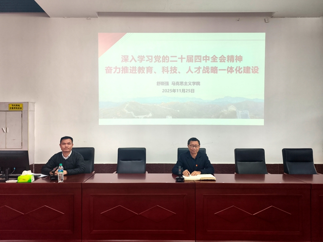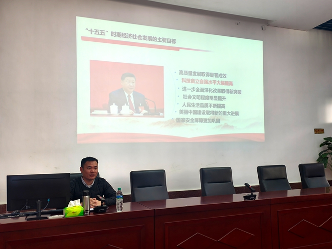 舒斯强以“深入学习党的二十届四中全会精神,奋力推进教育、科技、人才战略一体化建设”为题,围绕“为什么要坚持教育、科技、人才一体推进”和“怎么推进教育、科技、人才一体化建设”两个问题,对坚持教育、科技、人才战略一体化建设的重要性、必要性及实施方法作了生动细致的阐释。